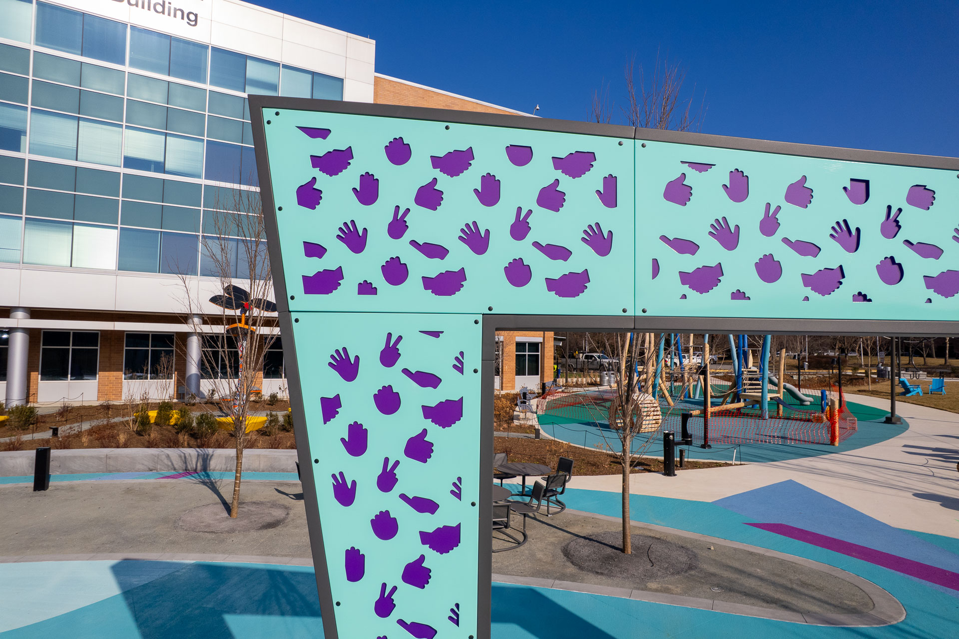 Inspired by the desire among residents to have a true civic space, Graham Projects designed the Free Speech Frame as a sculptural work of functional art that captures a powerful perspective of the civic space and while offering an abstract “podium”, effectively creating a stage for people to share speeches and performances. Embedded within the frame sculpture is a backlit pattern of hand symbols representing sharing, agreement, power, and peace.